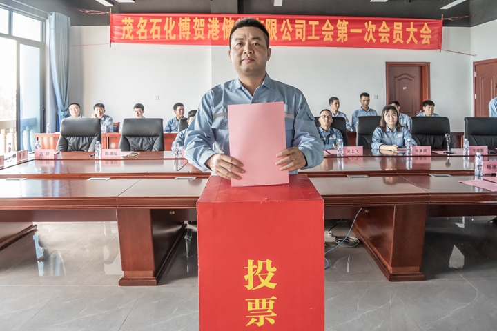 12月15日下午,茂名港集團(tuán)與中國石化合資的茂名石化博賀港儲運有限公司召開工會第一次會員大會,公司總經(jīng)理梁中柳、副總經(jīng)理梁上飛、財務(wù)總監(jiān)莊宇斌和全體職工參加了會議。會議選舉產(chǎn)生第一屆工會委員和經(jīng)費審查委員會委員,陳增燦當(dāng)選公司工會主席,岑俊慧當(dāng)選副主席,方婷當(dāng)選經(jīng)費審查委員會主任。