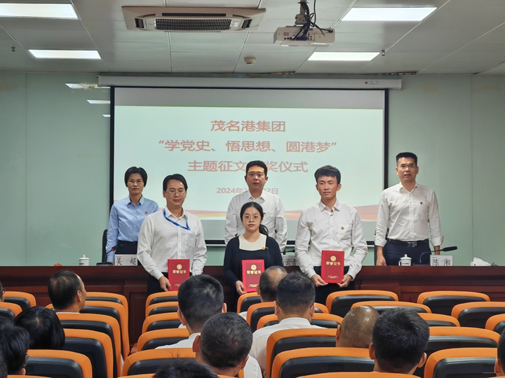 11月22日,茂名港集團舉行了“學(xué)黨史、悟思想、圓港夢”主題征文比賽頒獎儀式。集團工會主席馬云青出席會議并講話,為獲獎員工頒發(fā)榮譽證書?偛弥黻愊鎱㈩C獎。